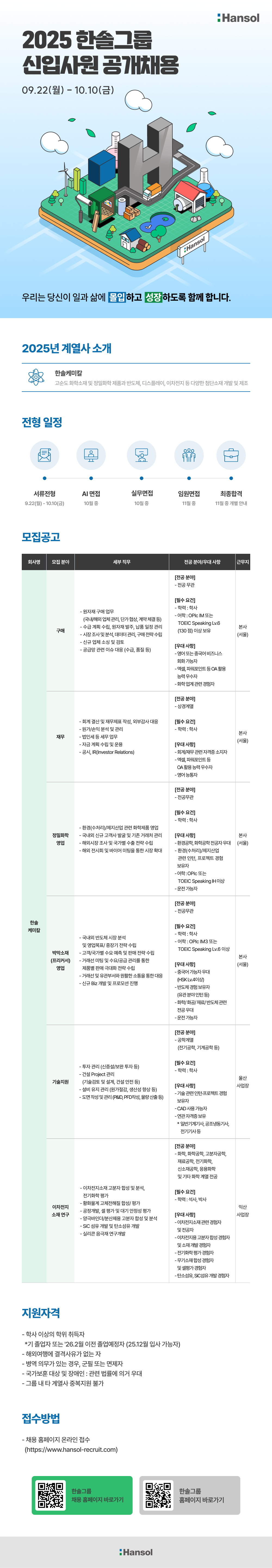 [한솔케미칼] 2025 신입사원 채용 및 메타버스 채용 설명회 안내 (~10/10)