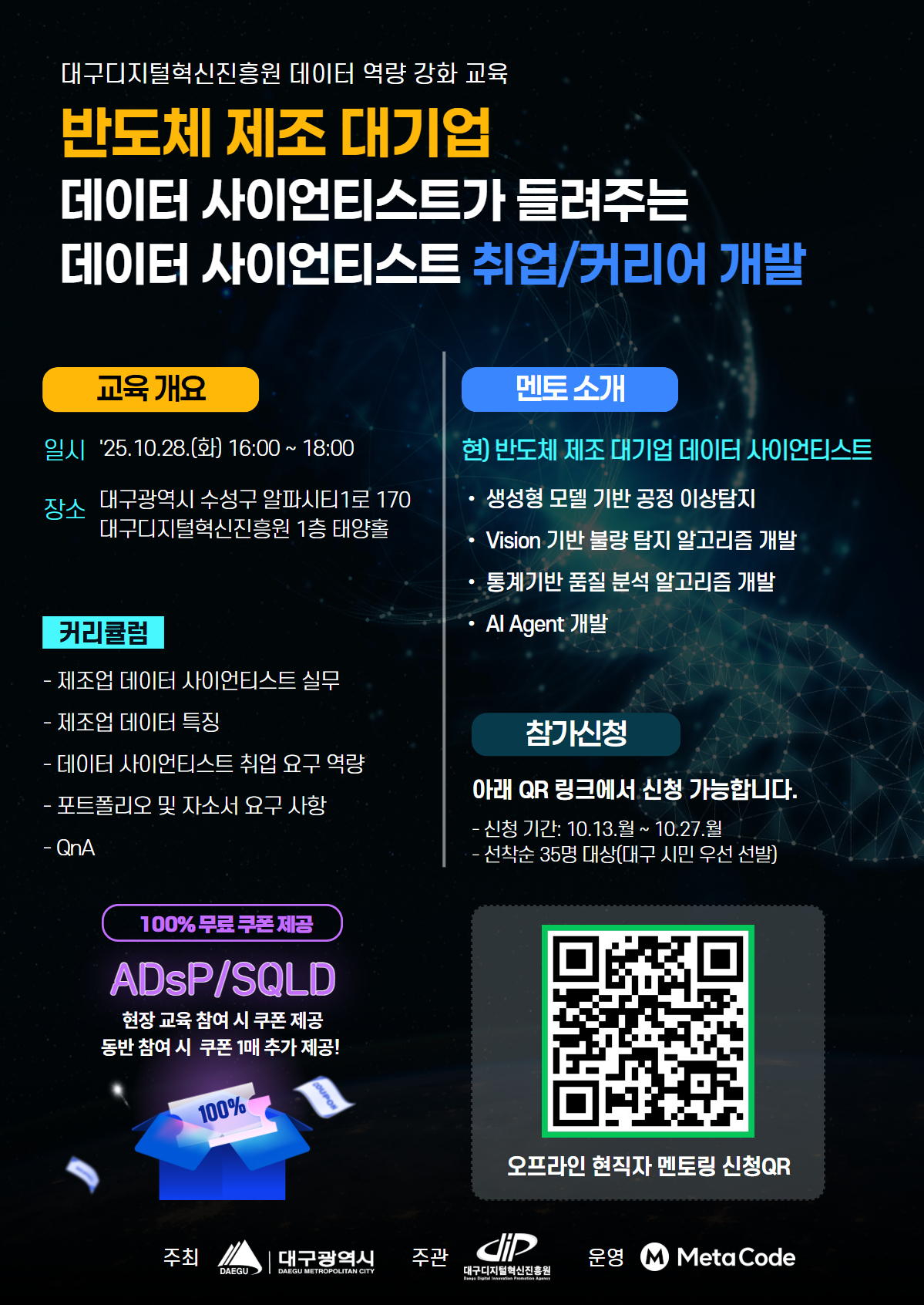 [대구디지털혁신진흥원 교육 진행] 「반도체 데이터 사이언티스트 오프라인 멘토링 」상세 안내