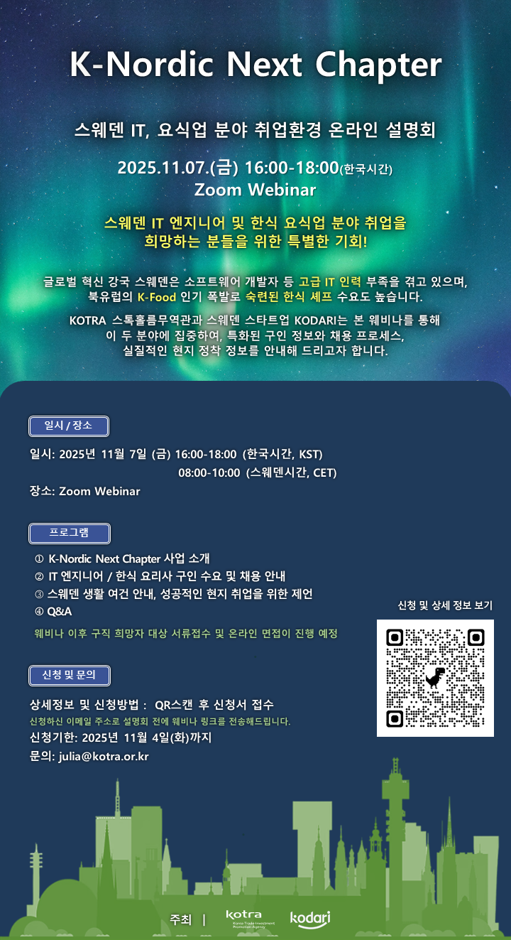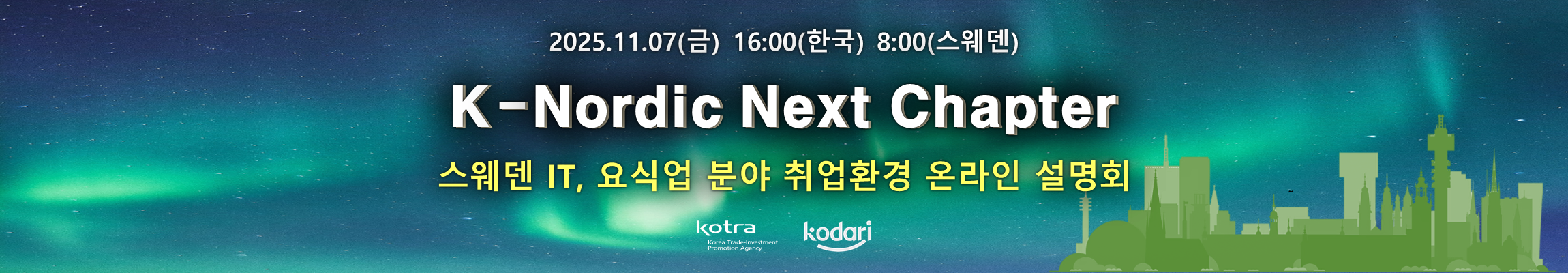 [KOTRA/취업지원팀] 스웨덴 IT, 요식업 분야 취업환경 온라인 설명회 (K-Nordic Next Chapter) 개최 안내