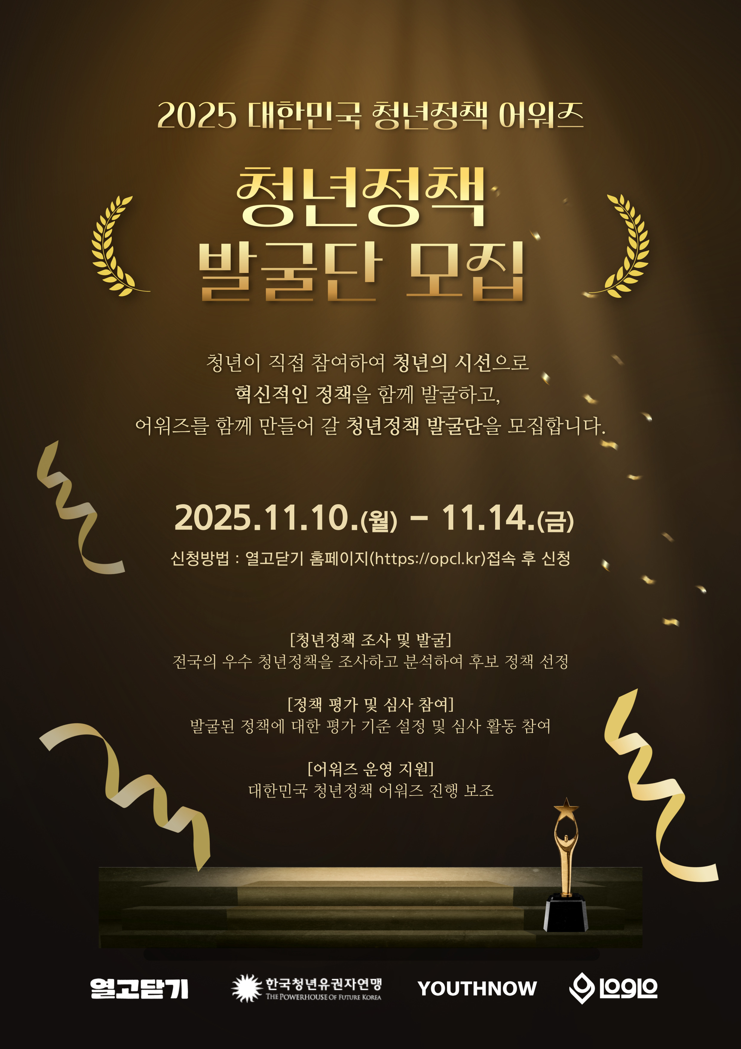 프로그램 명칭: 2025년 대한민국 청년정책 어워즈 청년정책 발굴단 모집