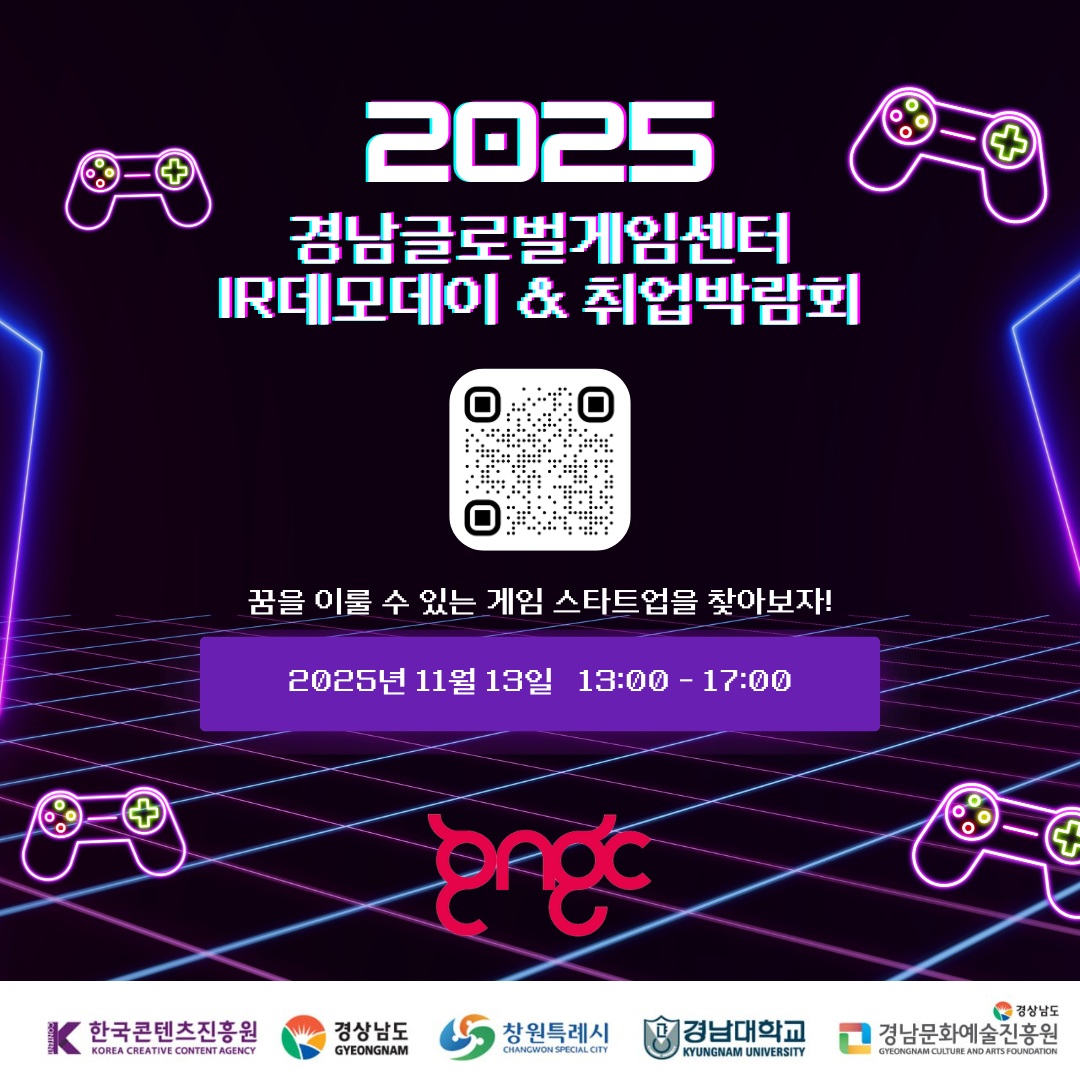 ○ 행 사 명: 2025 경남글로벌게임센터 ir 데모데이 및 취업박람회