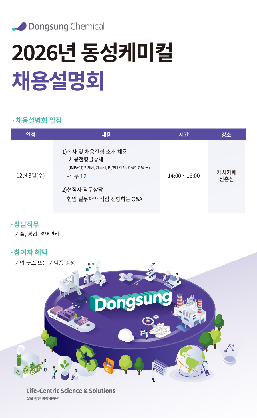 [동성케미컬] 2026년 동성케미컬 신입사원 채용설명회 안내