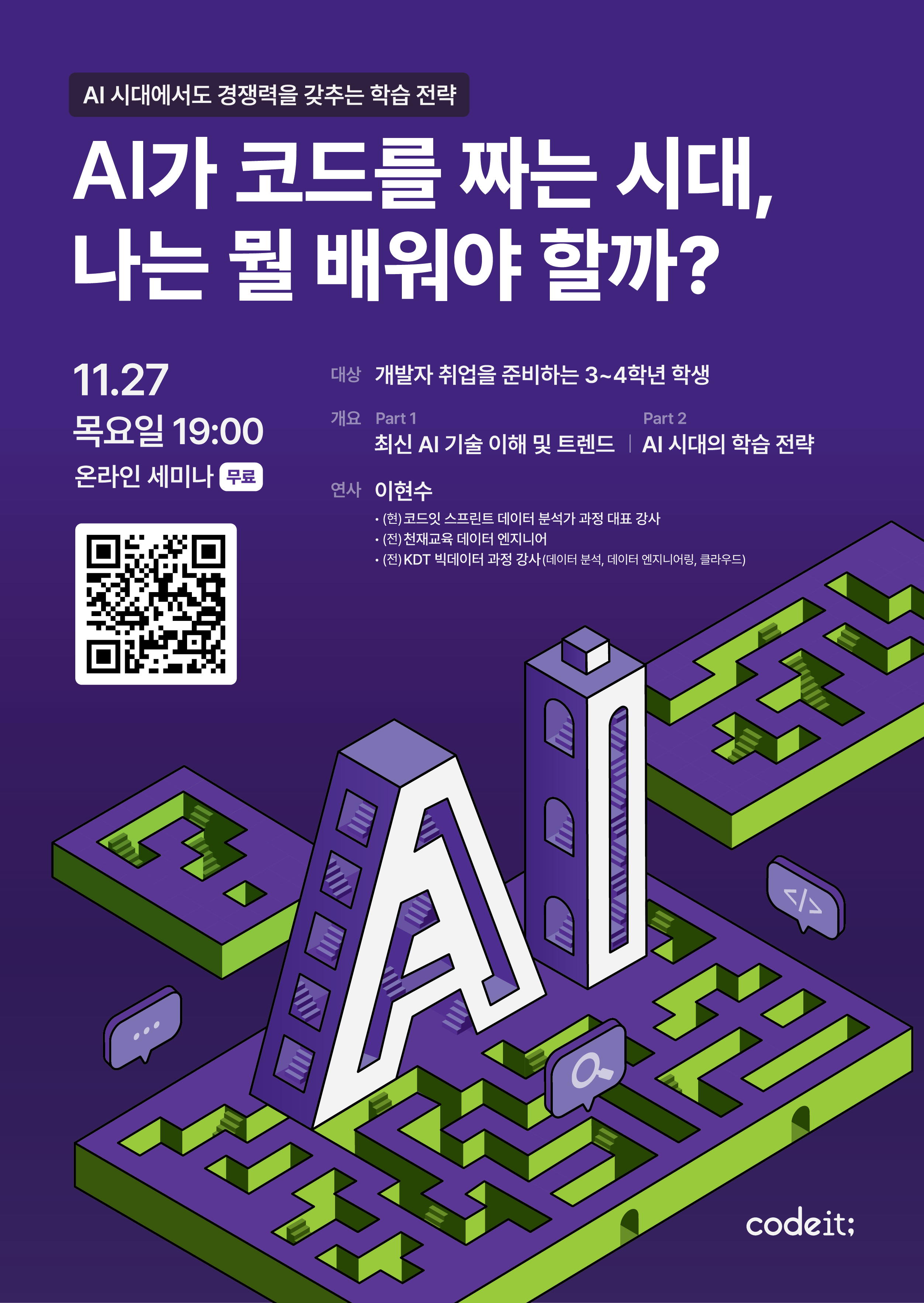 ✨ [무료 세미나] AI가 코드를 짜는 시대, 나는 뭘 배워야 할까?