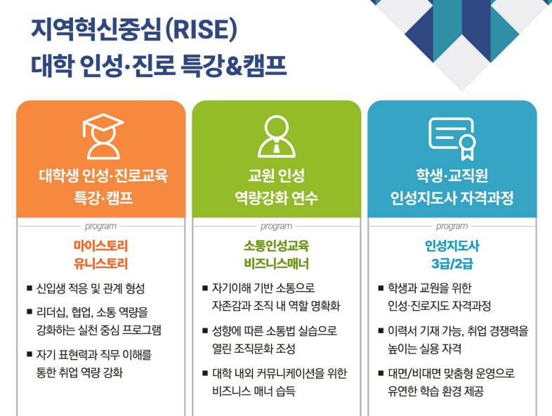 [한국인성교육협회] 대학 인성 진로 교양 프로그램 안내 작성자관리자 작성일자2026-01-02 12:52:26 조회38 * 자세한 내용은 첨부파일 참고 바랍니다. 첨부파일 [한국인성교육협회]대학 인성_진로_교양_프로그램_포스터.pdf