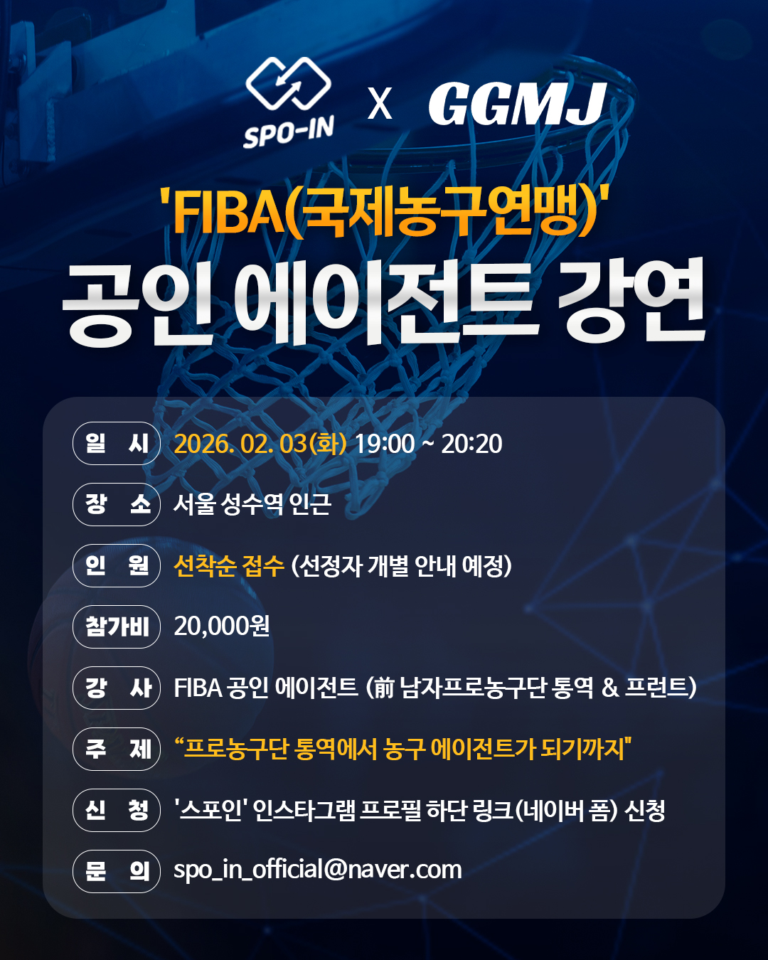 FIBA(국제농구연맹) 공인 에이전트'강연 안내