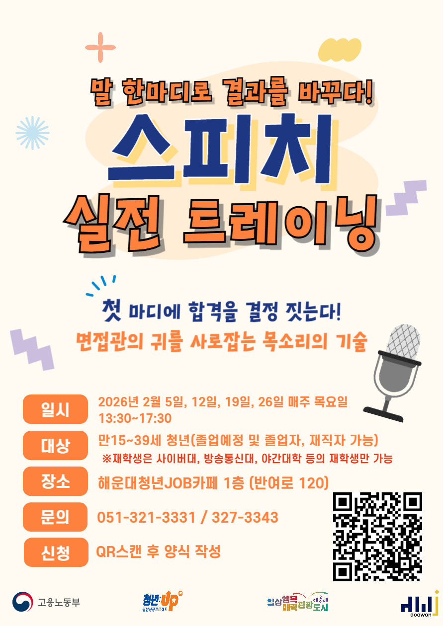 해운대청년JOB카페와 함께 면접에서 통하는 말하기 기준과 전달력을 완성해보세요!