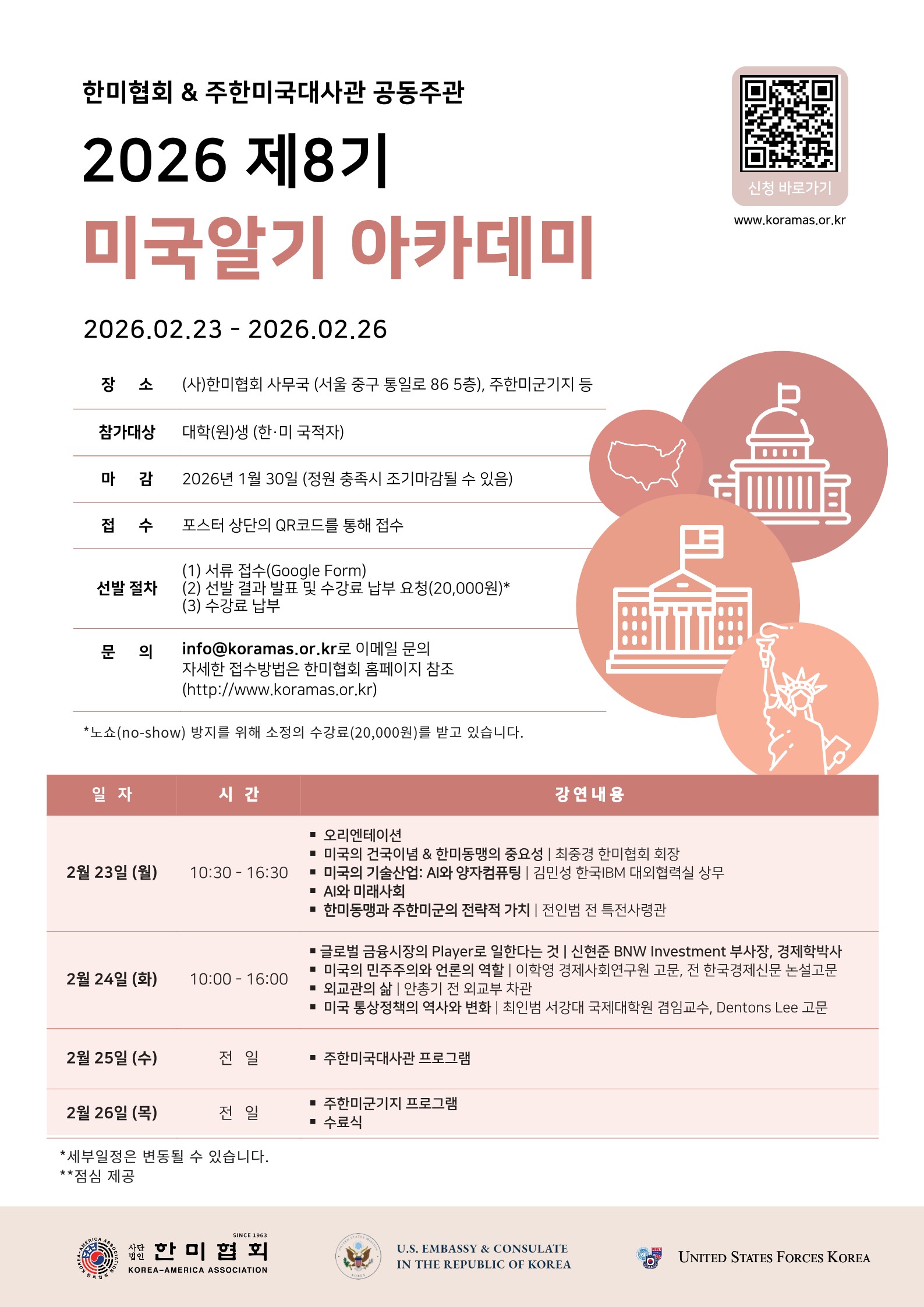 한미협회 차세대교육원 2026 제8기 미국알기 아카데미 안내