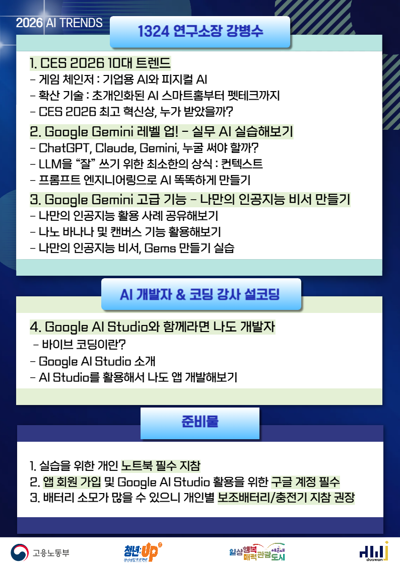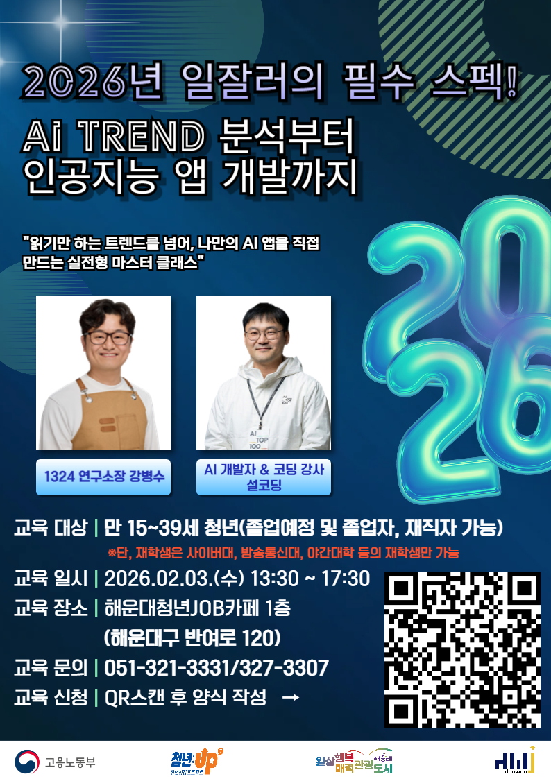 [해운대 청년job카페 드림포트] 2026년형 일잘러의 필수 스펙 : AI 트렌드 분석부터 인공지능 앱 개발까지!