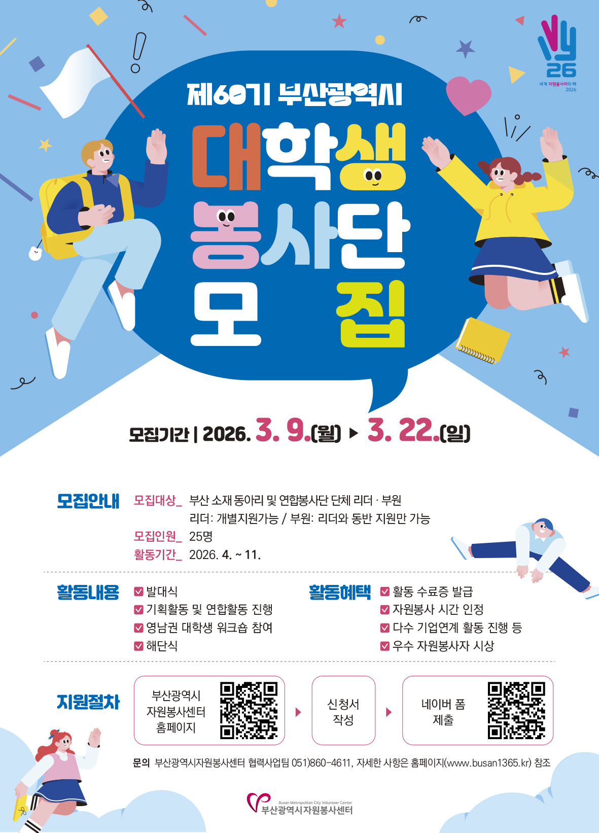 3) 모집대상 : 부산 소재 대학 동아리 및 연합봉사단 등 단체 소속 리더