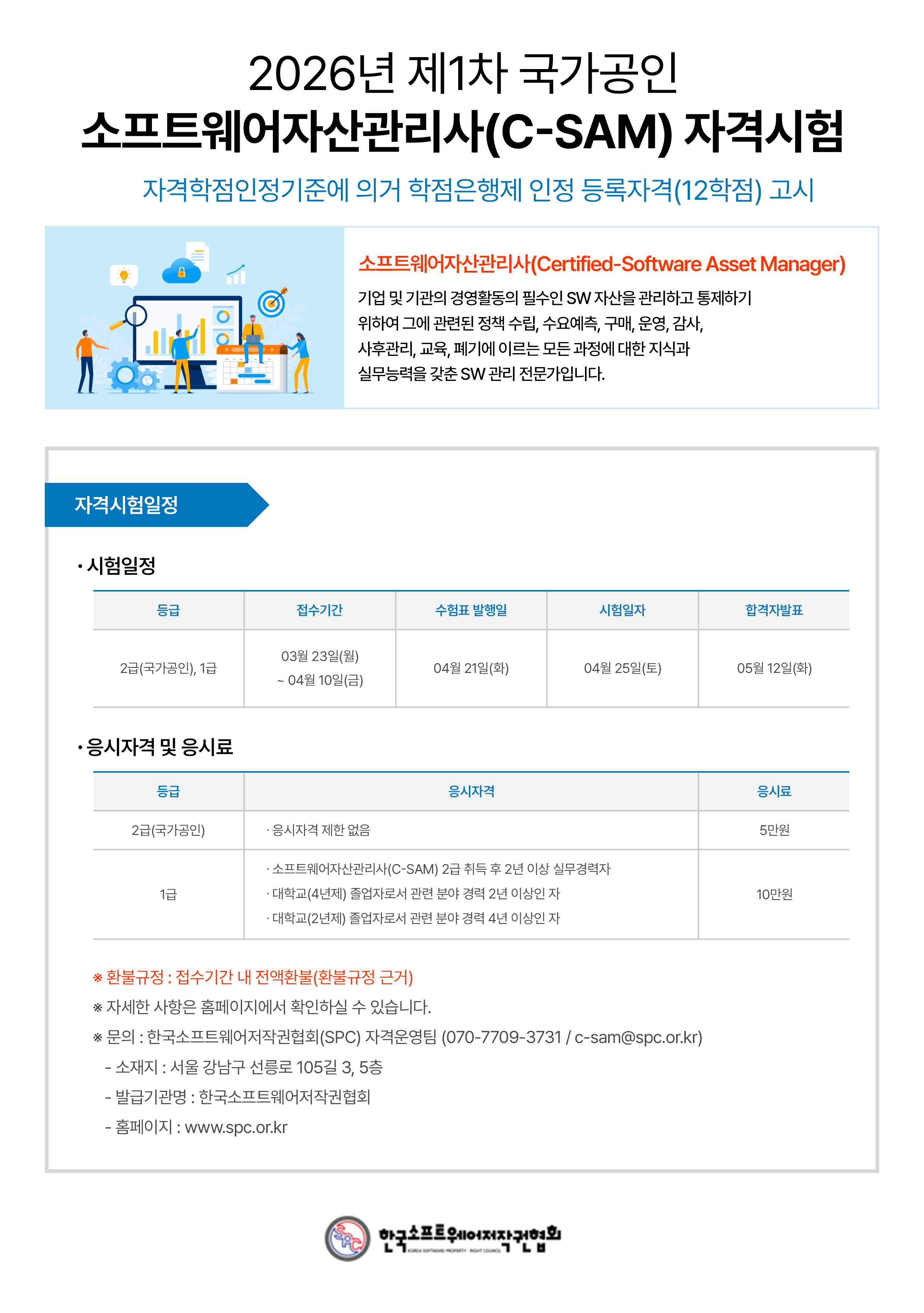 [한국소프트웨어저작권협회]국가공인 소프트웨어자산관리사(C-SAM) 자격증 응시료 프로모션
