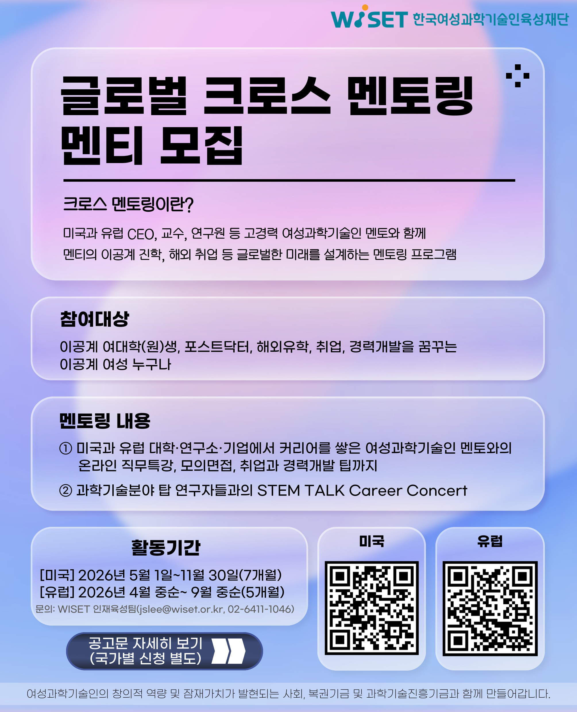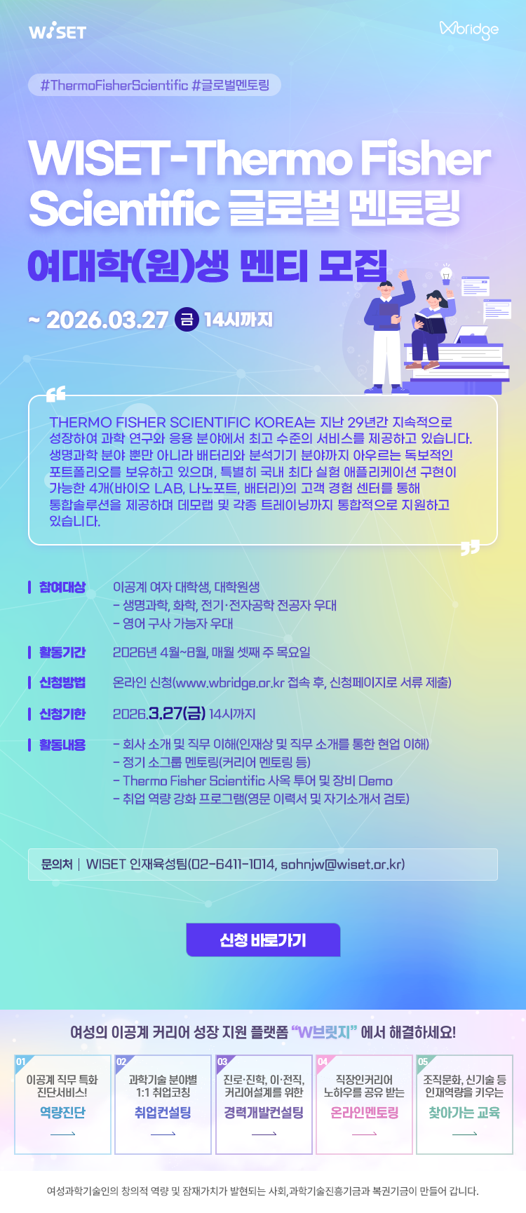 2026년 WISET 이공계 여대학(원)생 멘토링 참여자 모집