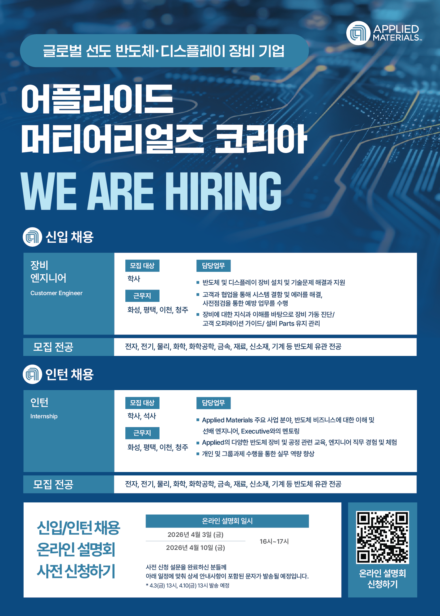 [어플라이드 머티어리얼즈 코리아] 신입/인턴 채용 온라인 설명회 진행 안내