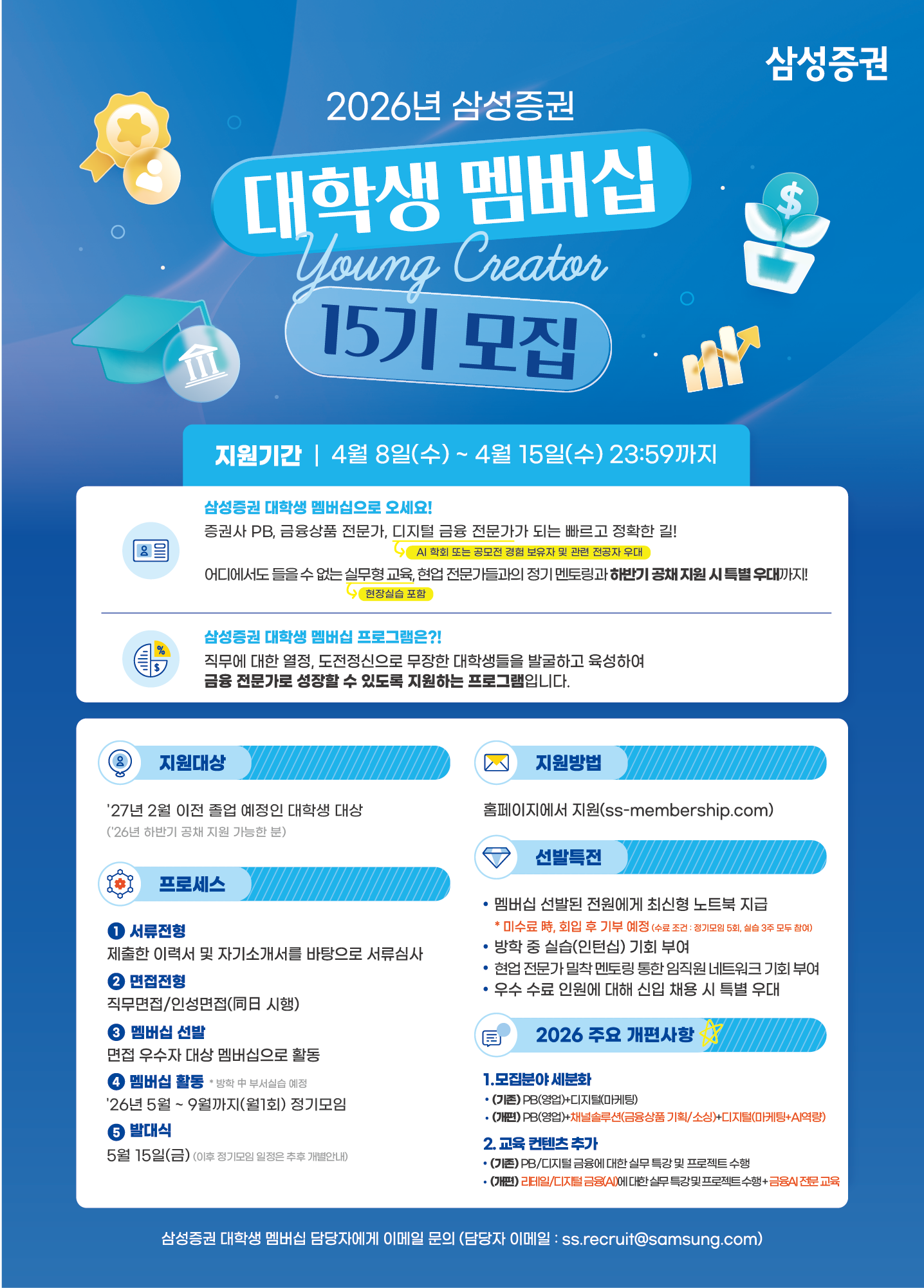 ⭐ [삼성증권] 2026년 대학생 멤버십 Young Creator 15기 모집⭐
