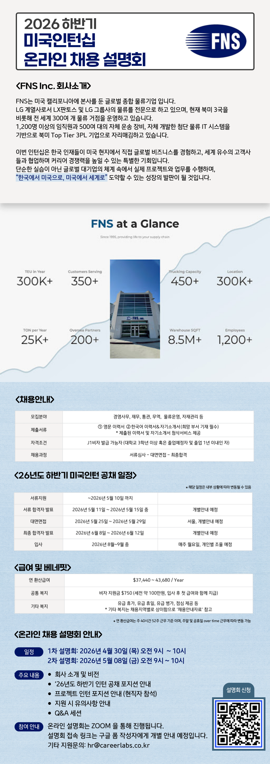 [미국인턴] 글로벌 물류기업 FNS Inc. 2026년 하반기 온라인 채용설명회