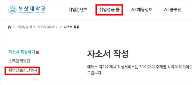 부산대 취업전략과 소개를 하실 때 홈페이지에서 아우란트 검사를 할 수 있다고 했는데 찾을 수가 없네요.