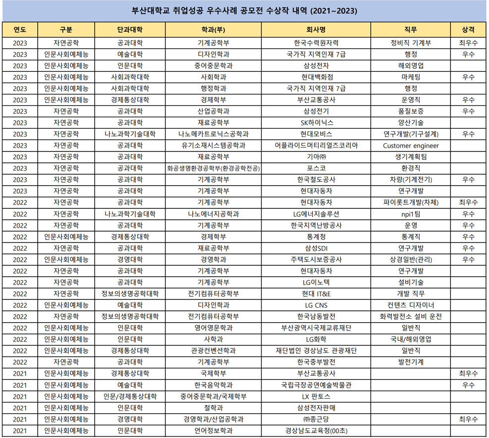 취업성공 우수사례 공모전 최근 3개년 수상작을 붙임과 같이 알려드리니 참고하시기 바랍니다.