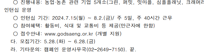 2024년 농업농촌 가치 확산 캠페인 인터십 모집