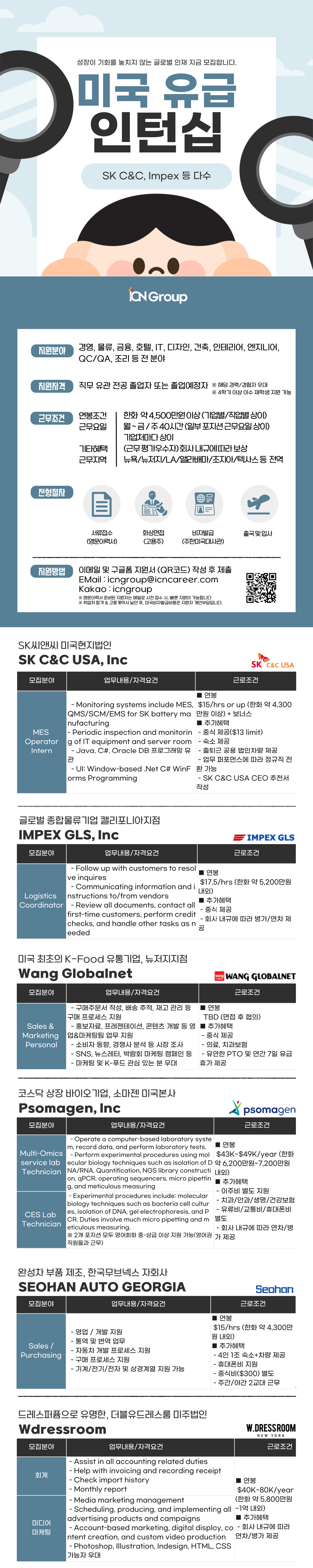 미국 현지 우수 기업 인턴십 모집 (1월2주차)
