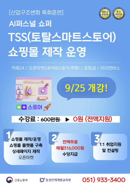 [동성인재개발교육원] 국비지원 AI 바이브코딩 쇼핑몰 운영 관리 교육 생 모집