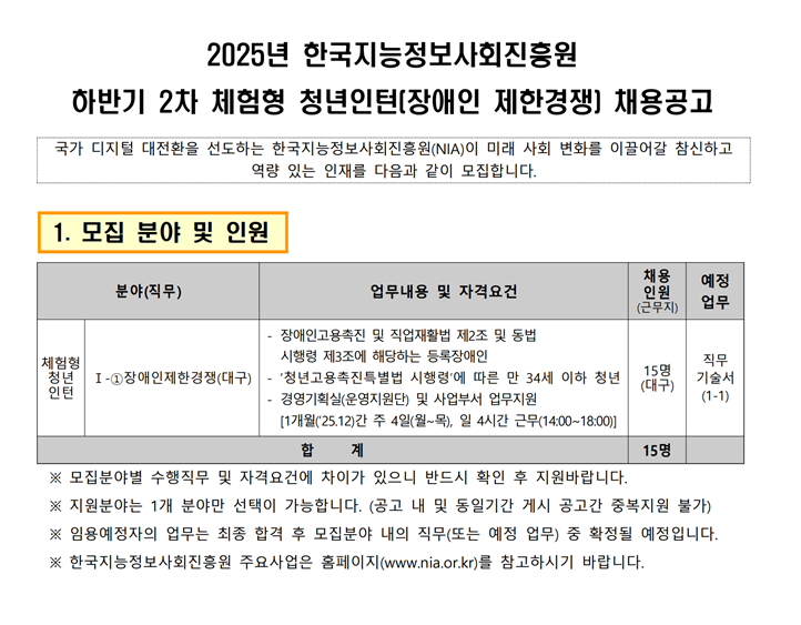 모집대기하반기 2차 체혐형 청년인턴(장애인 제한경쟁) 채용공고