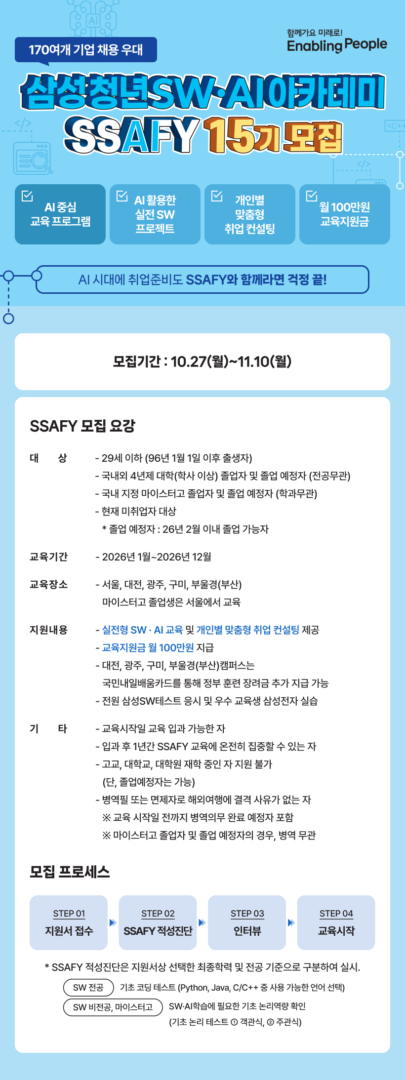 삼성청년SW·AI아카데미 SSAFY 15기 모집