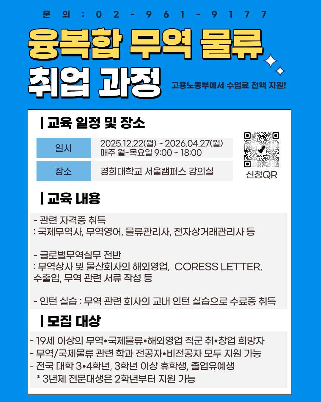 [경희대학교 글로벌미래교육원] 재학생 및 졸업생 취창업 대비 국가자격증 취득 및 인턴 과정 (국비무료)