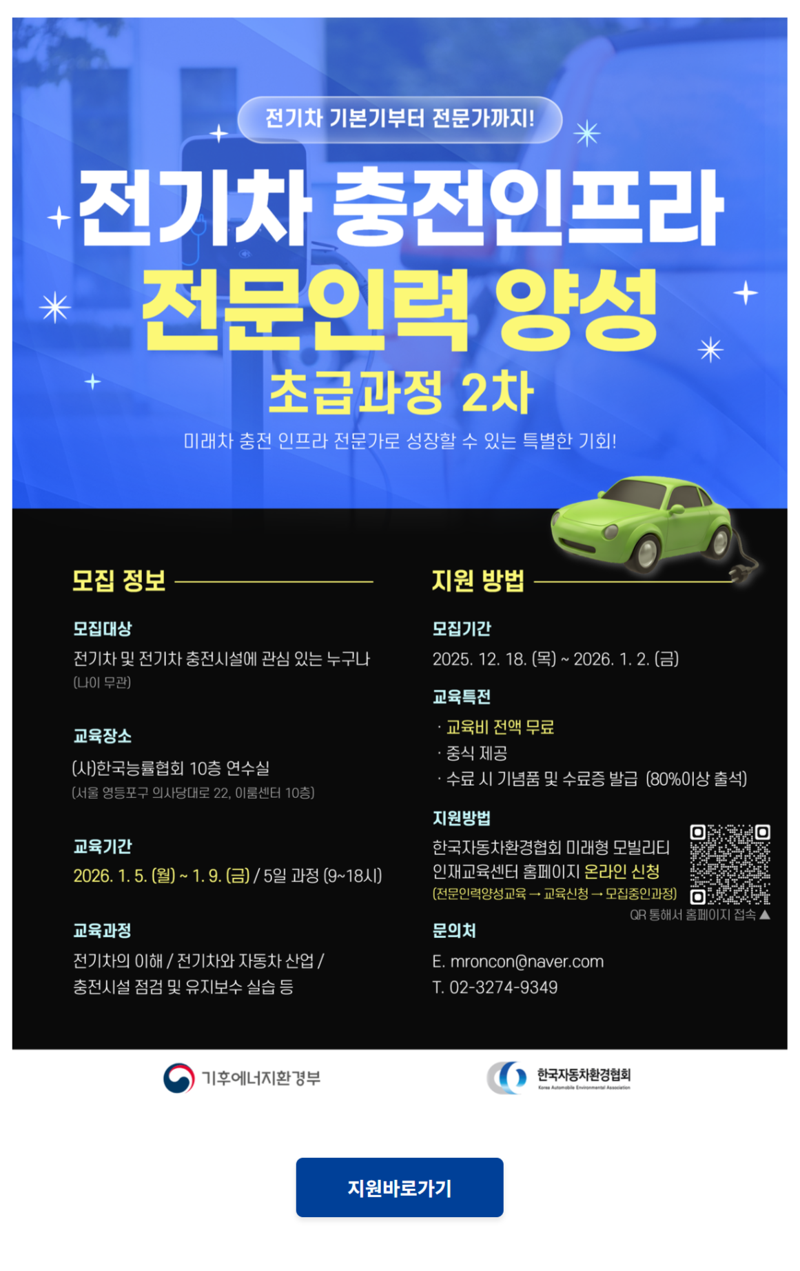 [무료교육] 전기차 충전인프라 전문인력 양성(초급과정 2차)