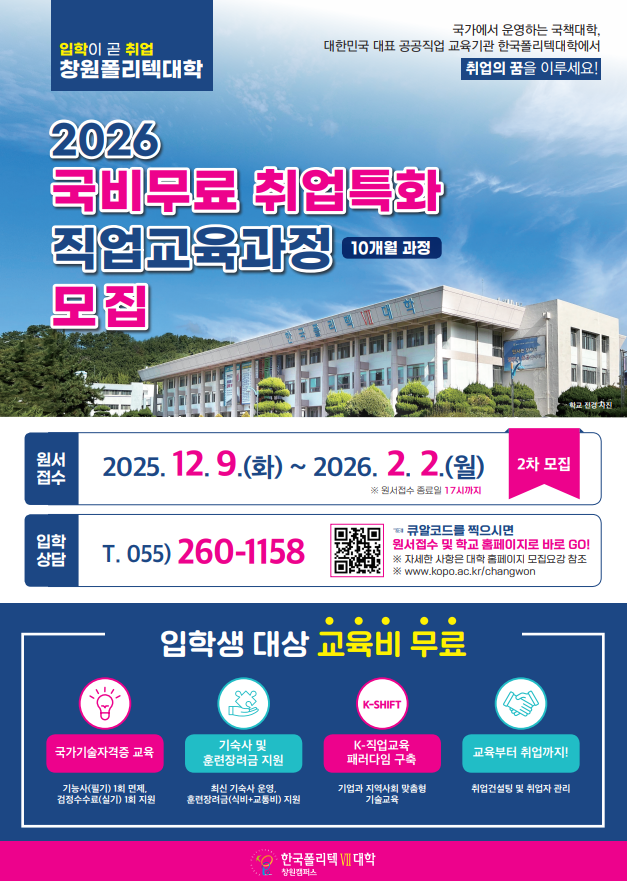 2026 국비무료 취업특화 직업교육과정 모집