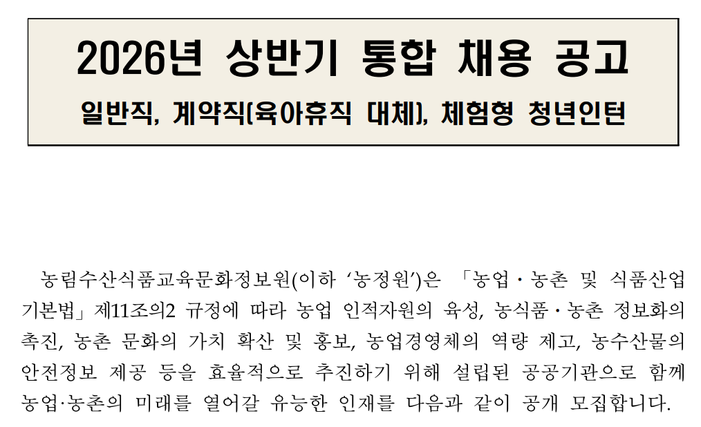 농림수산식품교육문화정보원 2026년 상반기 통합 채용 공고