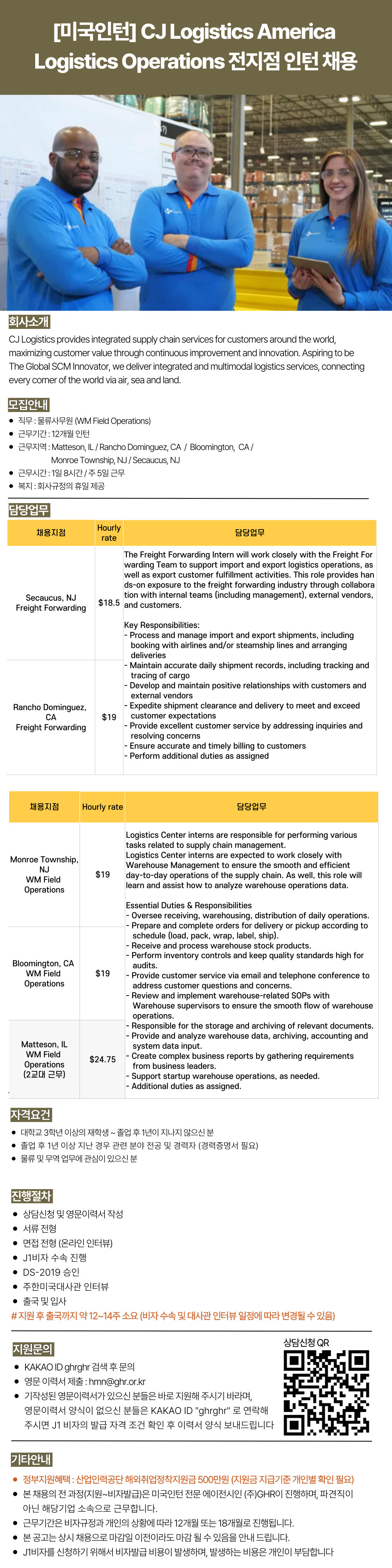 CJ Logistics America Logistics Operations 전 지점 인턴 채용