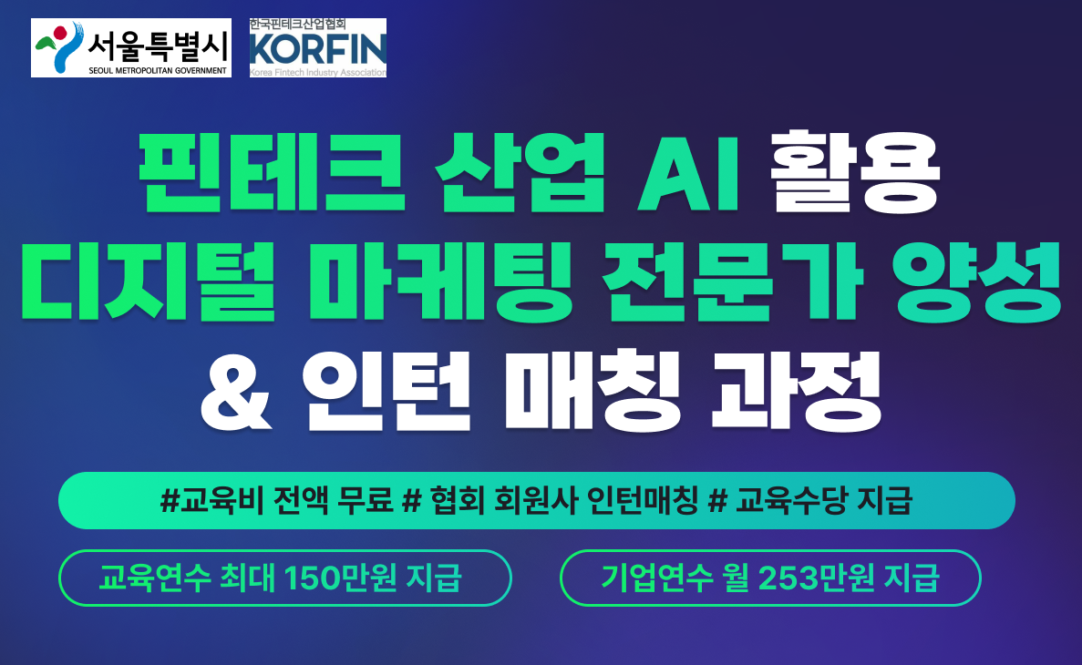 [교육비전액무료+인턴쉽채용지원] 핀테크 산업 AI활용 웹퍼블리셔&UI개발, 디지털마케팅 전문가 과정안내