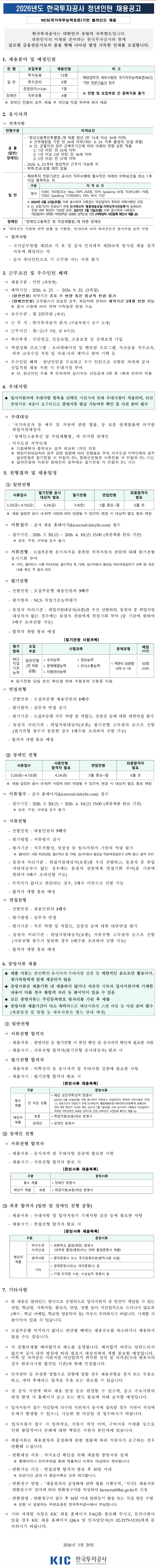 2026년도 한국투자공사 청년인턴 채용