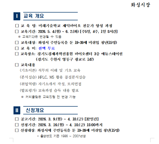 2026년 미래기술학교 제약바이오 전문가 양성 과정 교육생 모집