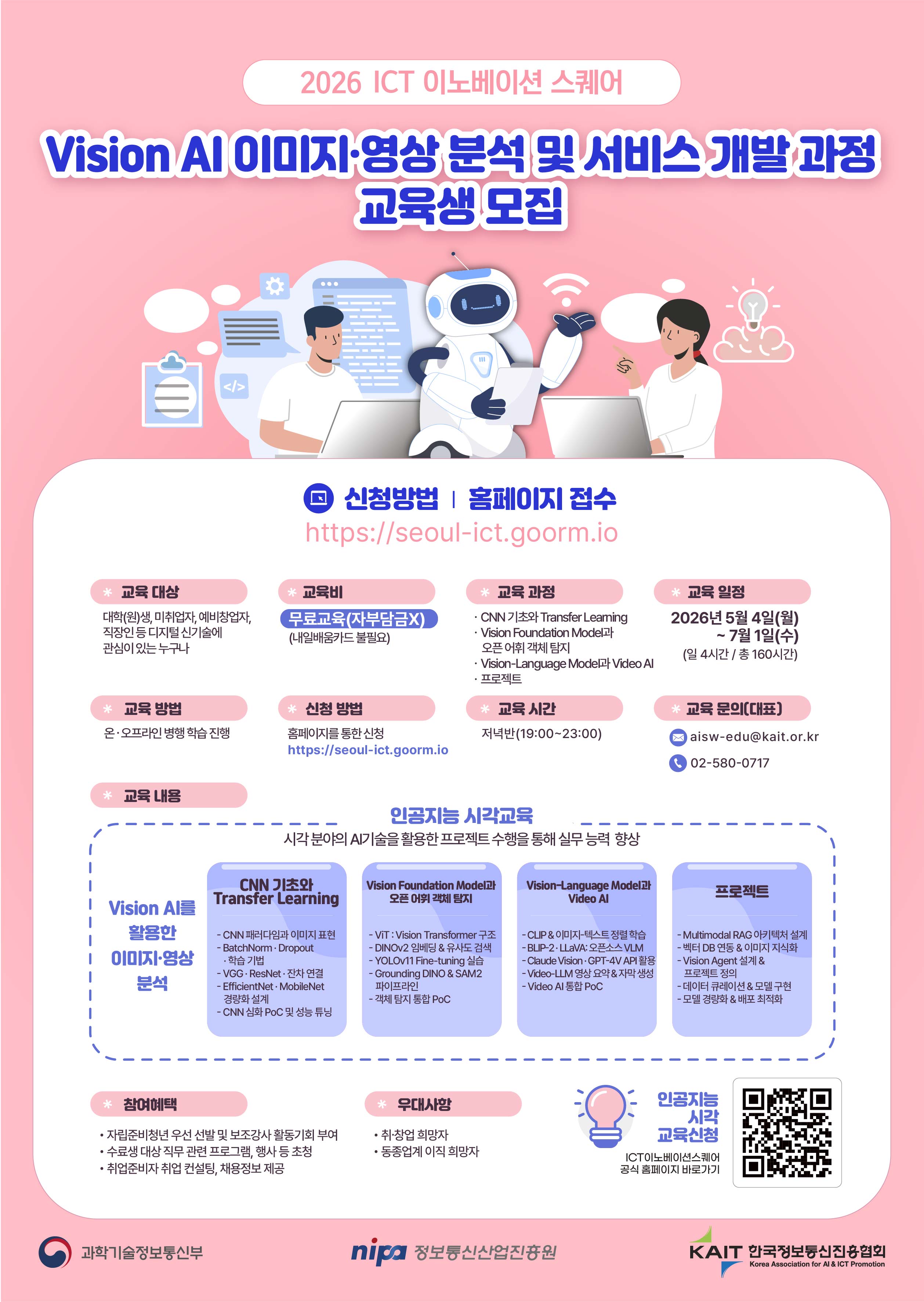 [KAIT/과기정통부] ICT 이노베이션 스퀘어 디지털 신기술 교육과정 수강생 모집, 전액무료