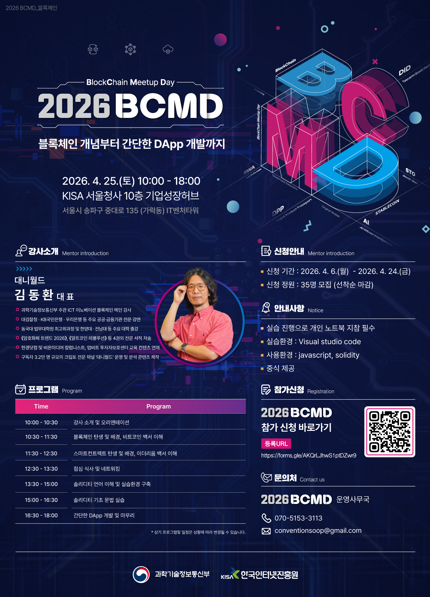 2026년 4월 25일(토) 2026 블록체인 밋업데이(BCMD)가 개최됩니다.