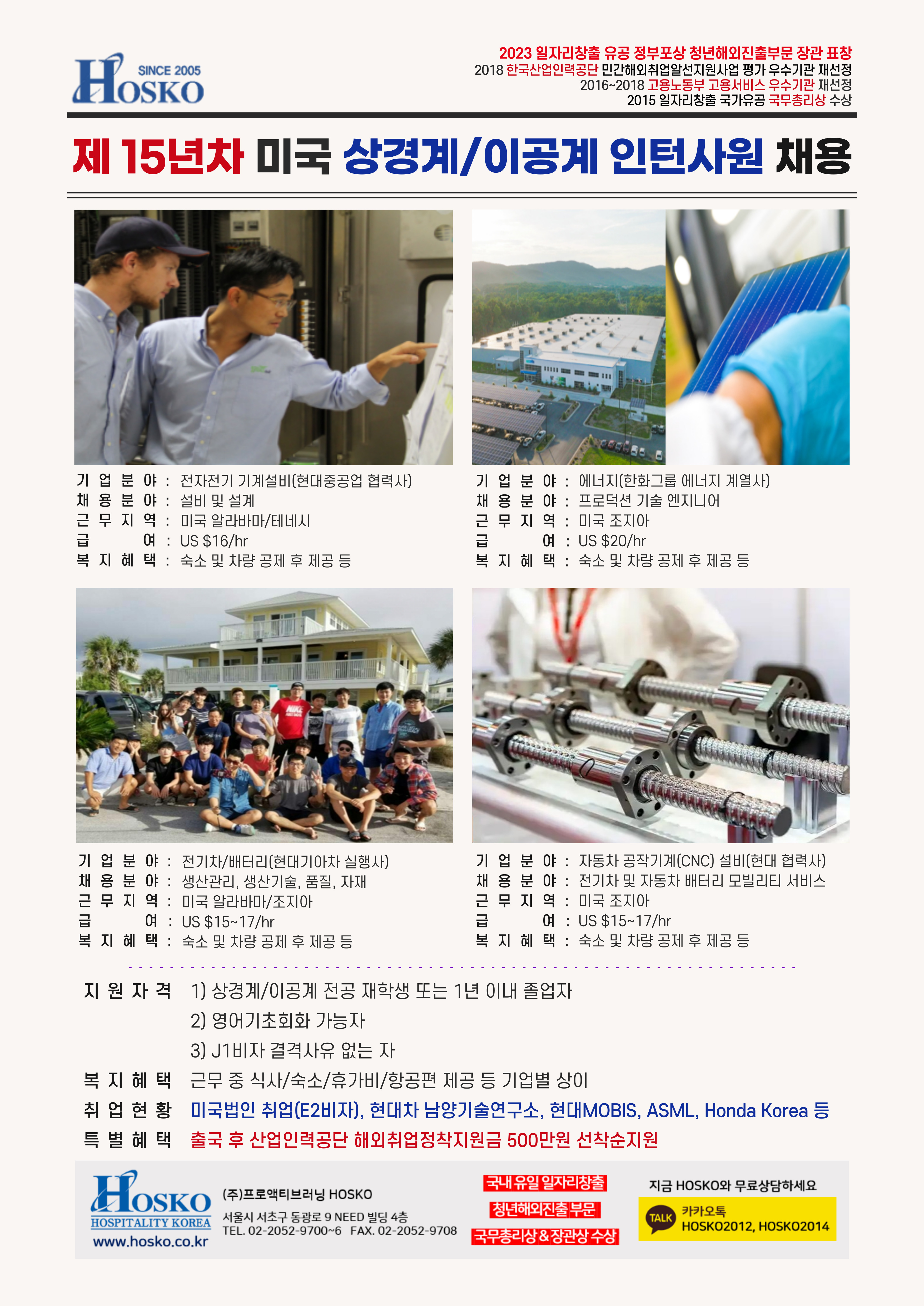 HOSKO 제15년차 미국 상경계/이공계 인턴사원 채용
