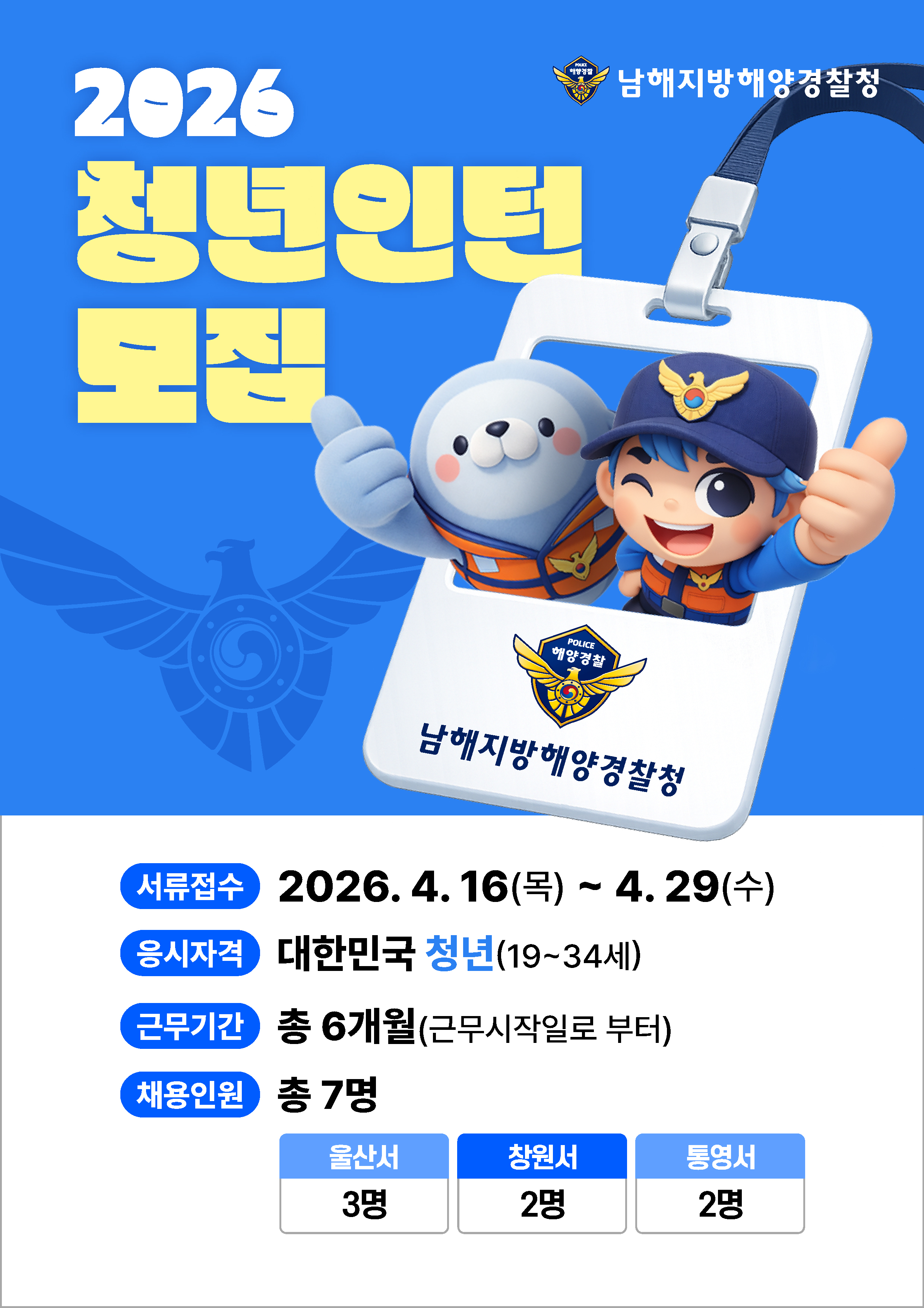 2026년 2차 남해지방해양경찰청 청년인턴 채용