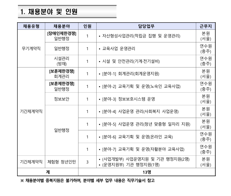 재단법인 한국자활복지개발원 직원채용(장애인 제한경쟁, 체험형 청년인턴)