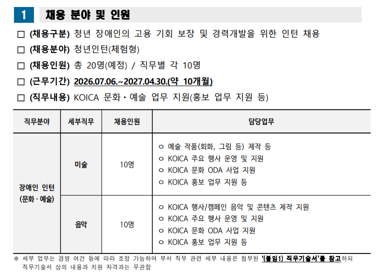 [KOICA] 2026년 KOICA 장애인 인턴 채용' 채용공고
