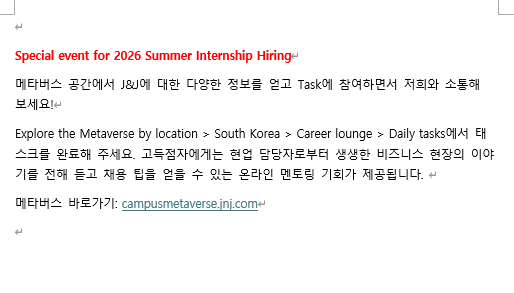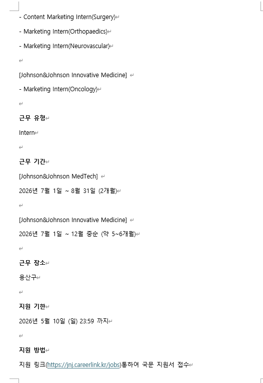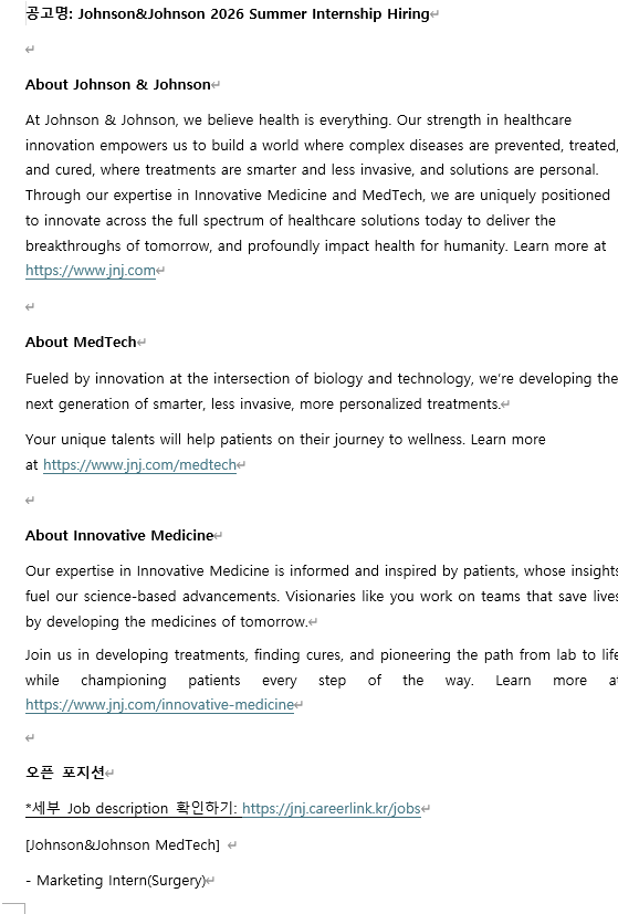 Johnson&Johnson 2026 Summer Internship 채용 홍보