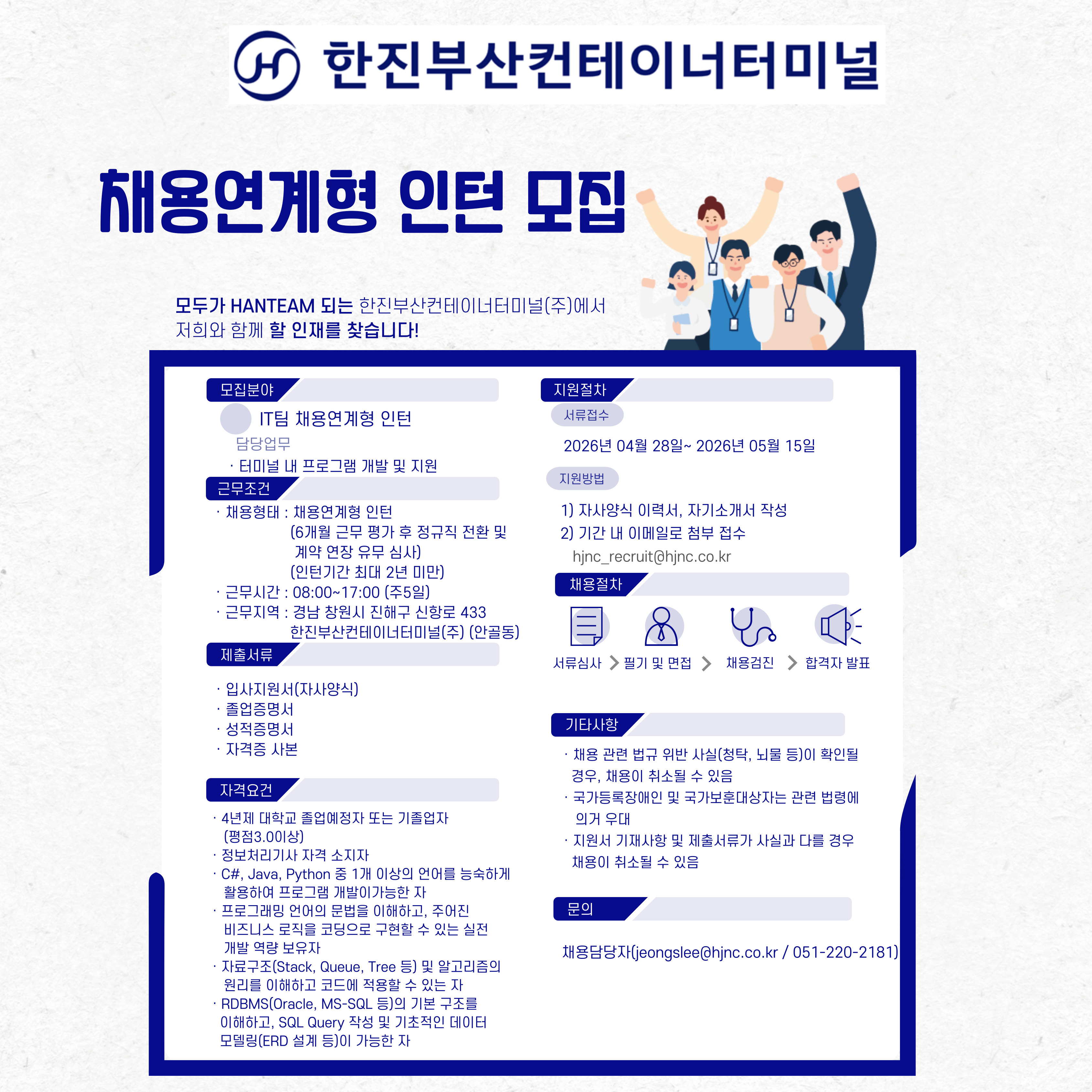 [한진부산컨테이너터미널] IT팀 채용연계형 인턴 모집