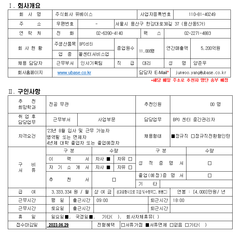 ※ 「추천채용 의뢰서」 양식은 한글 또는 워드 파일로 보내주십시오.