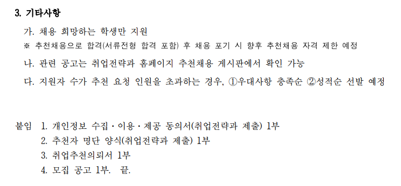 최종 합격 여부는 반드시 취업전략과로 알려주시기 바랍니다.