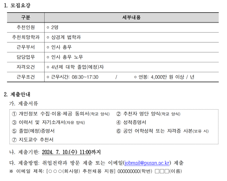 ※ 이메일 제출 시 주소 : jobmail@pusan.ac.kr