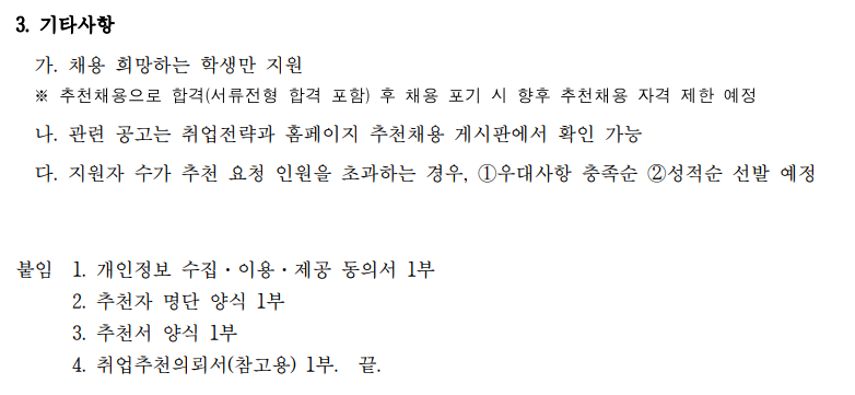 최종 합격 여부는 반드시 취업전략과로 알려주시기 바랍니다.