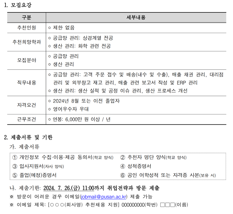 ※ 이메일 제출 시 주소 : jobmail@pusan.ac.kr