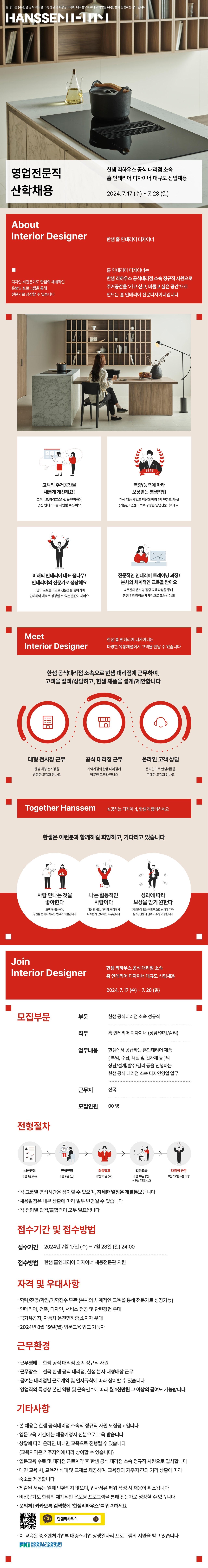 2024년 7월 한샘 공식대리점 소속 RD직무 산학채용(우수인재 추천)