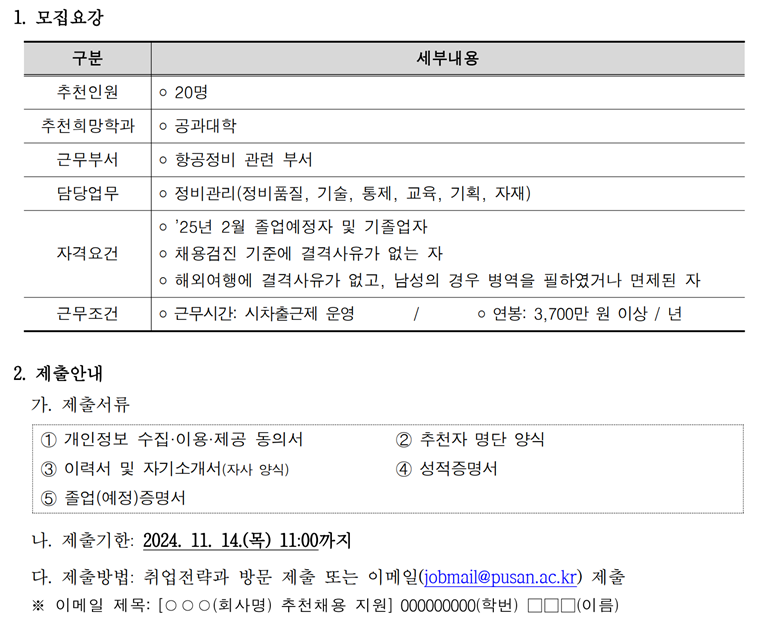 ※ 이메일 제출 시 주소 : jobmail@pusan.ac.kr