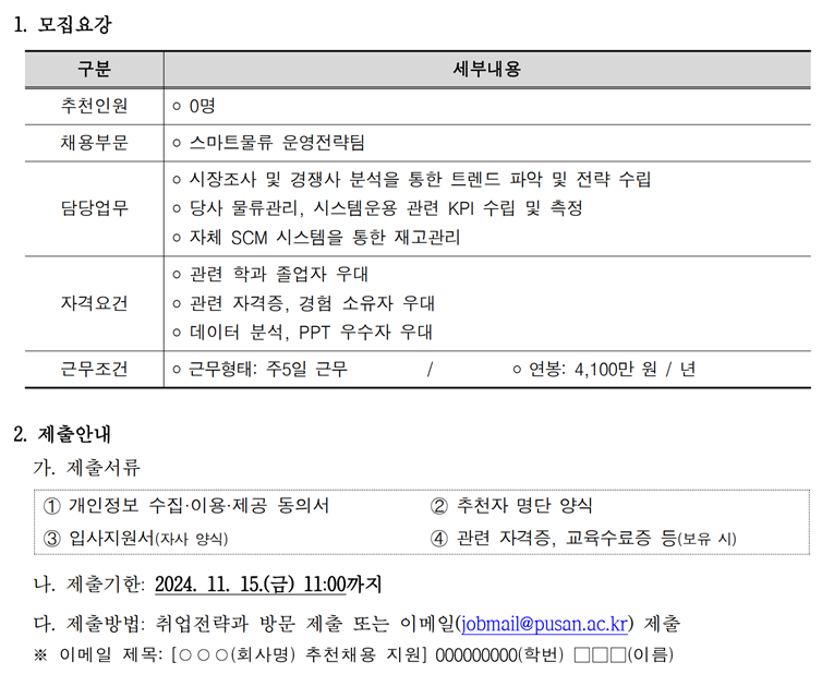 ※ 이메일 제출 시 주소 : jobmail@pusan.ac.kr