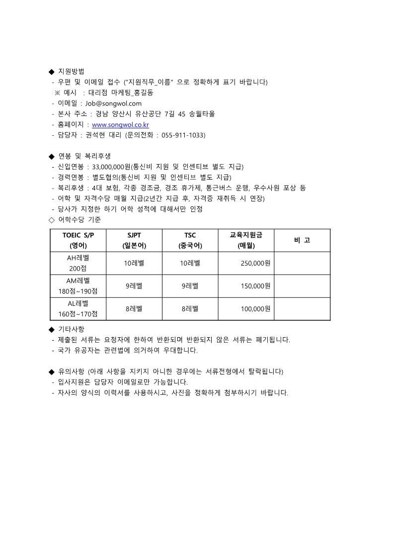 ※ 「추천채용 의뢰서」 양식은 한글 또는 워드 파일로 보내주십시오.